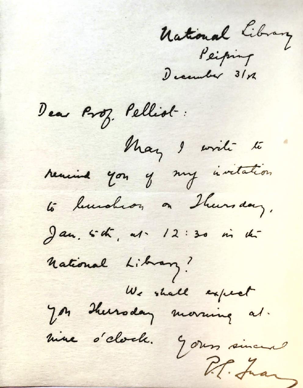 作為圖書館的負責人,袁同禮特別關注充實館藏,為此與國際學人多方交流,而伯希和正是與他互動頗多的人士之一??箲鹌陂g,先生和伯希和的通信較少,存留的信中可見先生控訴日本帝國主義對中國圖書事業的摧殘,呼吁法國對中國圖書館的支持。