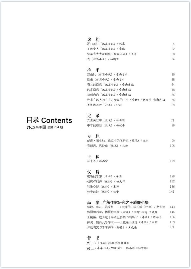 一次和小瓊談到這個話題,我說何不將評判權交給年輕人,“90后寫,90后編”。小瓊以為然。她執行力超級強,將欄目改成“90后推90后”,建起500人的微信群,設計了接龍的形式,一期刊發一男一女兩位“90后”的小說,下一期由上一期的作者任初選編輯,負責從投稿中選出3篇作品,再由500人群的年輕人投票決選出下一期的上稿者,依此類推,選定稿件后,我們才介入后續的編輯工作。后又邀請尚在中大讀博的徐威開設“90后文學觀察”的評論欄目,形成了“90后寫、90后編、90后評”的生態。這一舉措引起了文壇的關注,《文藝報》聯合《作品》合辦了“新天90后”欄目,從此,“90后”作家成為各大文學期刊爭相約稿的對象,今天活躍的“90后”寫作者,很大一部分就是從《作品》和“新天90后”起步的,《作品》雜志也因此獲得了年輕人的信任,我們也嘗到了力推年輕人的甜頭。