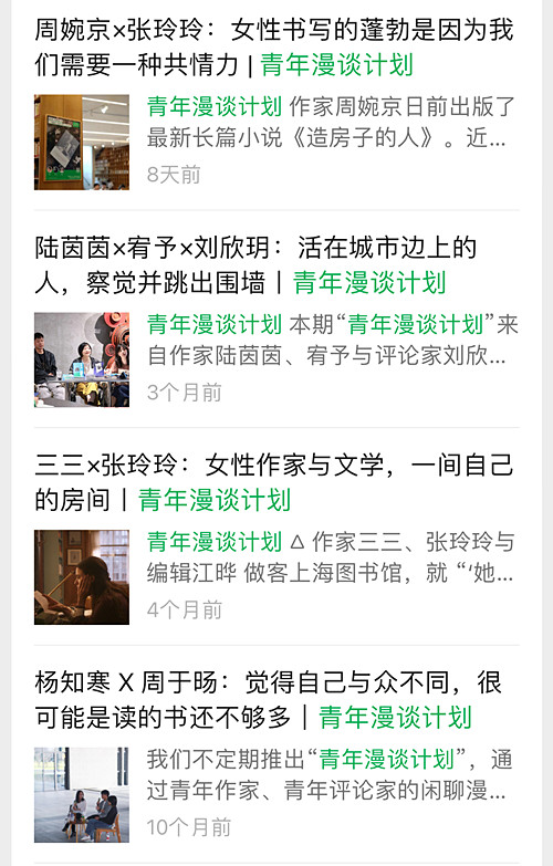 部分“青年作家漫談計劃”話題
