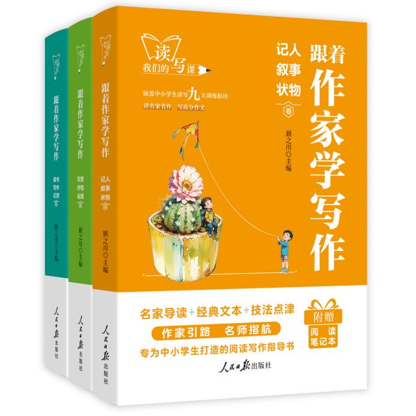 由人民日報出版社為中小學語文教師和學生量身打造的寫作指導用書《跟著作家學寫作》,包括“記人敘事狀物”“寫景抒情說理”“讀書寫作記游”3卷。叢書積極貫徹教育部《義務教育語文課程標準(2022年版)》《普通高中語文課程標準(2017年版2020年修訂)》的精神,落實新課標對中小學寫作教學的要求,配合統編語文教材相關內容,并向課外拓展,精選適合學生閱讀的名家名作,激發閱讀興趣,拓展讀寫實踐,切中廣大中小學生的閱讀和寫作需求,是一套有用、實用、好用的寫作教學輔助讀物。
