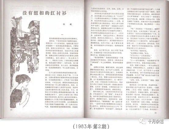 《十月》1983年第2期刊發鐵凝中篇小說《沒有紐扣的紅襯衫》