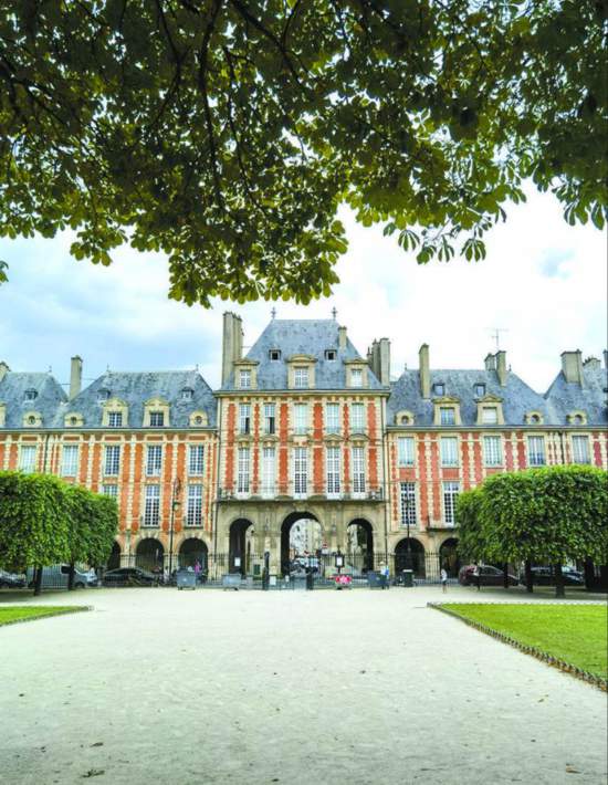 孚日廣場原名皇家廣場(Place Royale),是亨利四世于1605年建造的,距今已經四百多年了。這個巨大的據說邊長為140米的四方形廣場周圍是帶有老虎窗的四層聯排樓房,一律是紅磚和發黃石墻面和落地的長窗,屋頂是巴黎特有的海藍色的屋頂。而四周由拱廊(Arcades)連接成的寬闊的四方形回廊里,現在有畫廊、藝術品商店、咖啡館,還有學校和賓館。我們在1892年就開始營業的Richard喝了杯我喜歡的Espresso。陽光明亮而曬人,有涼風不時吹過,讓心情多少平靜了下來。