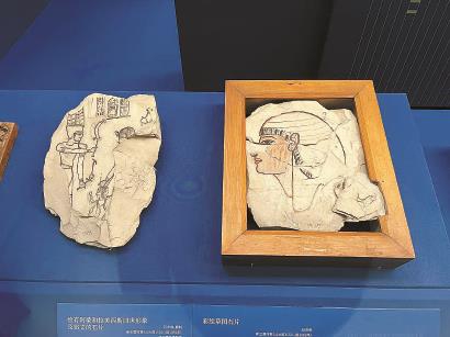 展覽上,觀眾也能看到古埃及工匠雕刻石像的記錄以及工匠們練手浮雕和畫像的“習作”,這些文物再現了古埃及人創造這些文物的過程。而在埃及的博物館里,也保存著從神廟奠基坑中出土的雕刻工具。