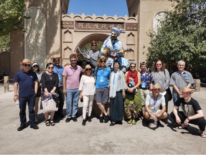 從古代絲綢之路到如今的“一帶一路”,新疆作為人類文明匯聚之地,擁有絕佳的自然景觀與悠久的人文歷史,難怪英國歷史學家湯因比說,如果一個人有來生,我愿意出生在兩千年前的龜茲(今新疆庫車),那個多民族文化交匯的地方。在天高云淡、瓜果成熟的8月,空氣中氤氳著豐收的香甜氣息,各國漢學家、翻譯家和中國作家從新疆首府烏魯木齊出發,途經昌吉回族自治州、吐魯番市,到水草豐茂的伊犁哈薩克自治州,最后抵達中國最西部的喀什地區。大家仿佛將短短的8天時間過成了一個月的豐富程度,他們品味新疆人文歷史,飽覽新疆美景,品嘗新疆美食,感受新疆人民的熱情好客以及安居樂業、載歌載舞的幸福生活,各國翻譯家和中國作家彼此間暢通無阻的交流,達成一個個合作意向,成就一段段真摯友誼,也留下一幕幕美好瞬間。