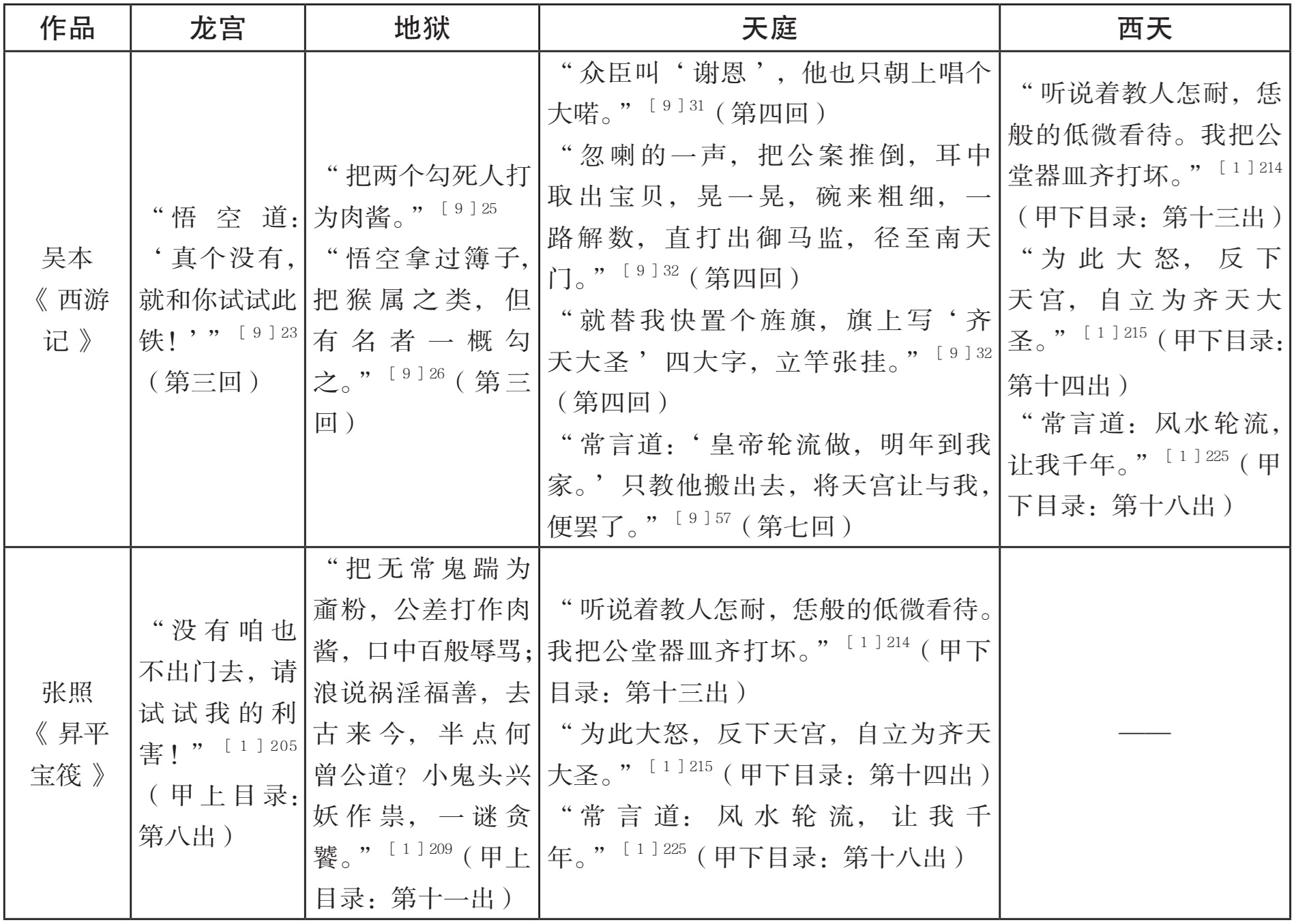 表1 孫悟空從詩話到雜劇、小說再到宮廷大戲中的叛逆對比
