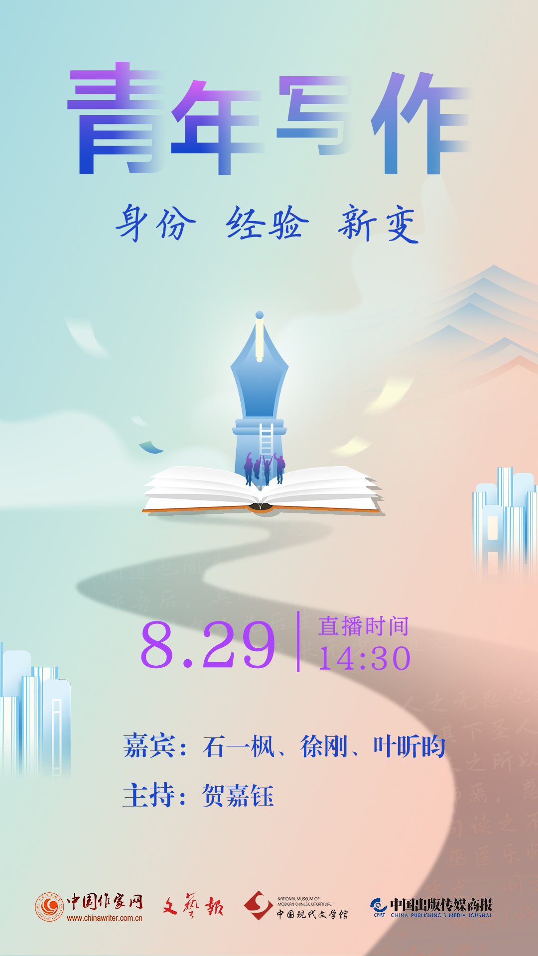 8月29日下午,在全國青年作家創作會議即將召開之際,中國作家網特邀70后作家石一楓,80后評論家徐剛,90后作家葉昕昀,走進中國作家網文學直播間,與主持人、青年學者賀嘉鈺一起,圍繞“青年寫作:身份、經驗、新變”暢談青年寫作相關話題。