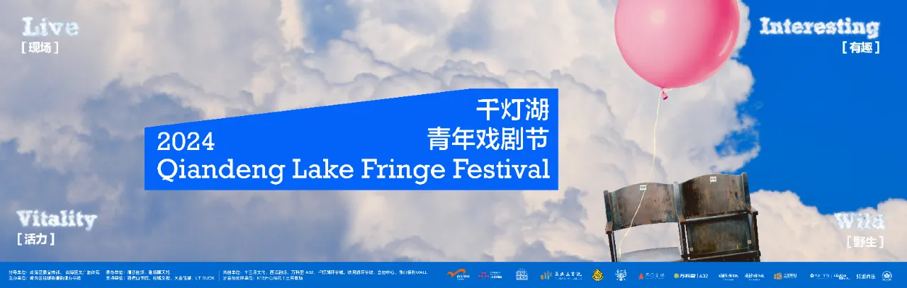 本屆“千燈湖青年戲劇節”的主視覺以象征湖水和天空的湛藍色為主色調,一只飛向天空的粉色氣球意指青春、希望、想象力與創造力。戲劇正如這只氣球,牽動著具有嶺南古早劇場風味的座椅,帶領觀眾穿過夢幻般的云層,遇見橙色的飛鳥、淺藍色的蝴蝶、黃色的貓、淡粉色的魚。它們分別以“野生、現場、有趣、活力”為名,為城市帶來鮮活的氣息、亮麗的色彩。