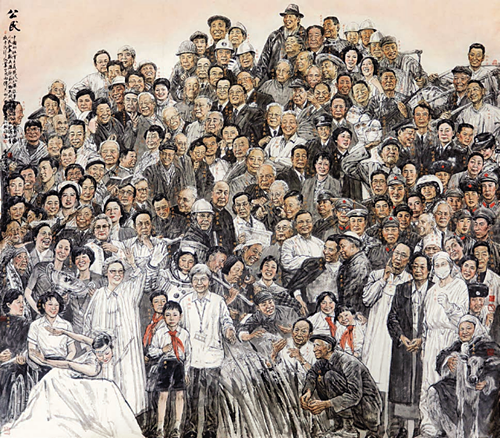 1977年,中國廣袤大地上暗流涌動、百廢待興,發生了一系列翻天覆地的變革,國家自此闊步向前,一代人的命運開始峰回路轉,時代的大幕徐徐拉開?;蛟S是注定與繪畫有緣,1977年10月,馮遠應人民美術出版社之邀去北京改《李自成》片段畫稿,南下火車上恰巧與朱乃正先生坐對座。幾番交談,朱先生對這個才華橫溢又思維敏捷的年輕人非常欣賞,到北京后又將馮遠引薦給盧沉和周思聰,幾位先生在繪畫技法上的指點親授令他受益匪淺。1978年5月,馮遠去上海觀摩“法國19世紀農村風情作品展”時遇到中國畫“新浙派人物畫”奠基者方增先,方先生在看了他的畫作后贊不絕口,建議他試試考浙江美院(即后來的中國美院)的研究生。同年底,馮遠考入浙美中國畫專業研究生班,接受系統而嚴格的浙派體系培養。離開遼寧時,他立下初心:學好本事,畫好中國人,畫好中國歷史,畫好世界。