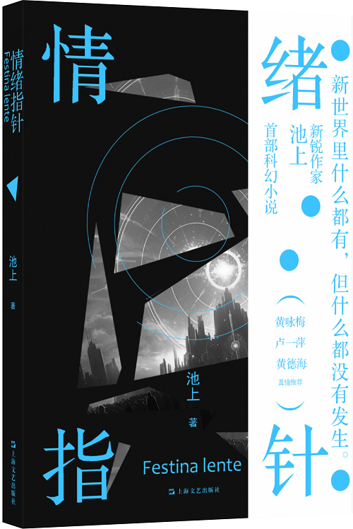 《情緒指針》是池上首部長篇科幻小說,科技發展到了超前高度的未來,出現了名為“大災變”的集體自殺事件,勒彌由此創建了基遍國。為避免人類的負面情感讓文明重蹈覆轍,基遍取消了家庭這種最基本的社會生活單位,并通過植入情緒指針保證人類情緒的絕對穩定。勞宇供職于基遍的秘密部門“???,負責清理過去社交媒體上遺留的情緒垃圾,隨著部門元老宋明朗的失蹤,他穩定的生活開始發生變化,勞宇漸漸發現“大災變”和情緒指針都是勒彌欺騙人類的手段,而他實際上是“零度情緒人”的研究藍本。