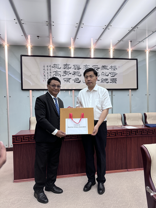 胡邦勝代表中國作協向緬甸作協贈送禮物