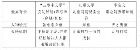 表1“三歲半文學”與兒童文學、多寶文的對比圖