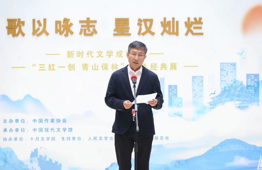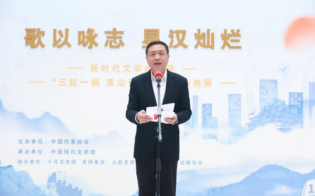 張宏森表示,從揚帆起航到乘風破浪,中國文學進入了新時代文學的嶄新階段。作為深入學習貫徹習近平文化思想的重要舉措之一,中國作協舉辦“歌以詠志 星漢燦爛——新時代文學成就展”,旨在全面展示文藝工作座談會召開以來,在習近平總書記重要講話的指引下,新時代文學高質量發展的輝煌成就。展覽分為“作品”“時代”“人民”“世界”四個單元,展品達千余件,包含手稿、書籍、刊物、照片、劇本、實物等類別,并配有人工智能生成圖像互動、影視欣賞等多處數字化媒體展示區,全面展現了文學創作成果豐碩、文學活動繽紛活躍、文學公共服務春風化雨的10年。在展覽中可以看到,1955年秋,47歲的周立波整理行裝,從北京一路南下,舉家搬回老家湖南益陽清溪村;67年后,中國作協啟動“新時代山鄉巨變創作計劃”和“新時代文學攀登計劃”兩項重大文學行動,激勵廣大作家熱忱描繪中國大地時代巨變,深刻反映人民群眾創新創造,用文學之力貫通中國人民創造輝煌成就的偉大實踐,強化邁向中國式現代化新征程的精神感召。另一重要展覽“‘三紅一創 青山保林’紅色經典展”,深情回顧了在新中國的歷史記憶和精神生活中永放光芒的經典作品,這些作品是中華民族的新史詩,以其深刻的思想內涵、生動的人物形象和所描繪的波瀾壯闊的社會歷史畫卷,謳歌了中國共產黨領導中國人民締造新中國、創造新生活的宏偉歷程?!皢柹n茫大地,誰主沉浮”的激情,“敢教日月換新天”的信念,“數風流人物,還看今朝”的豪邁,令無數中國人為之感動,一代代中國共產黨人從中汲取了無窮力量。