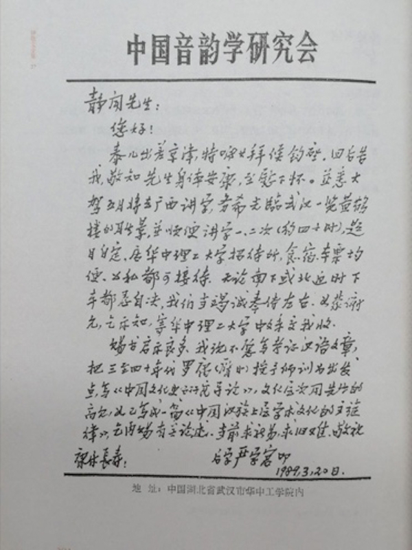 1980年代,遇著機會,活躍的學者定然輾轉騰挪,使出渾身解數。在嚴學宭而言,則不僅積極聯絡各方學者,籌建中國音韻學研究會等,也致力于創辦《語言研究》這一學術刊物。通過學會和刊物,不斷拓展華中工學院語言研究所與國內外各學術機構及學者的聯系。此外,由于嚴學宭被選為中國音韻學研究會會長,且陸續組織數期音韻學研究班,使新成立的華中工學院語言研究所成為學界不可忽視的一支力量。