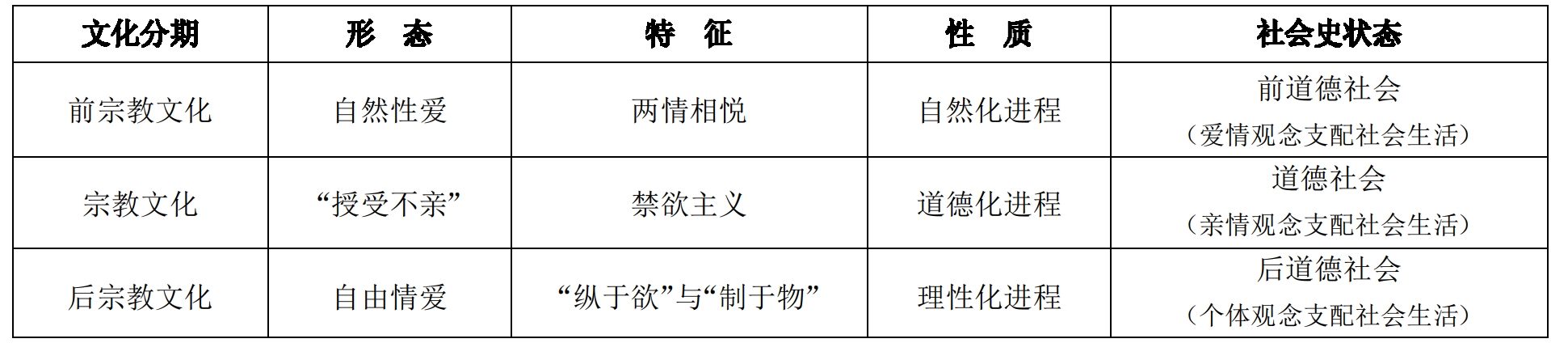 下表所列的是基于文化分期的情愛關系特征及其社會史狀態: