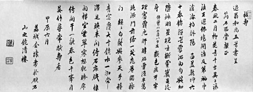 余懷行書《拈壽》,惲壽平《靈巖山圖》卷后題跋,故宮博物院藏。