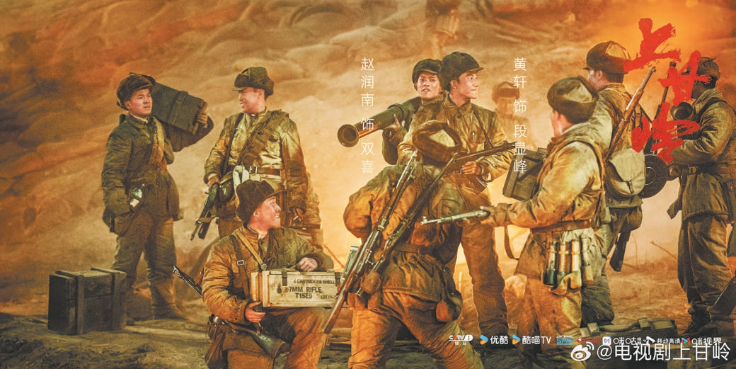 1952年10月,駐韓“聯合國軍”司令范弗里特調集兵力6萬余人,大炮300余門,坦克170多輛,出動飛機3000多架次,對志愿軍陣地發起高強度的火力攻擊,上甘嶺戰役正式打響?!奥摵蠂姟?190余萬發炮彈、5000余枚炸彈的進攻下,志愿軍陣地山頭被削低兩米,炮兵火力密度已超過第二次世界大戰最高水平。劇集在前半段用了較大篇幅來展示上甘嶺戰役的“難打”,借助軍事院校背景的主要人物段顯峰(黃軒飾)之口,客觀分析這場戰役的敵我力量懸殊。