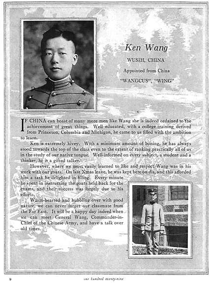西點軍校學生刊物《榴彈炮》上關于當屆畢業生王賡的一頁