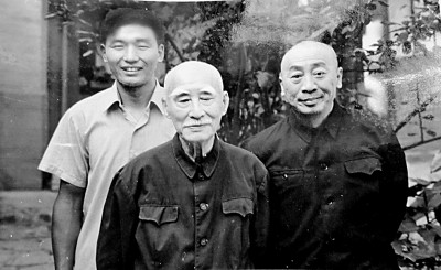 1982年9月,商金林(左)拜訪葉圣陶(中)。右為葉圣陶次子葉至誠。作者供圖