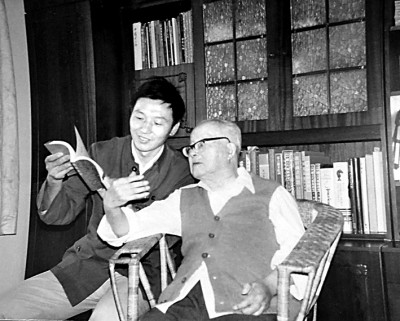 1986年9月,商金林(左)拜訪沈從文。作者供圖