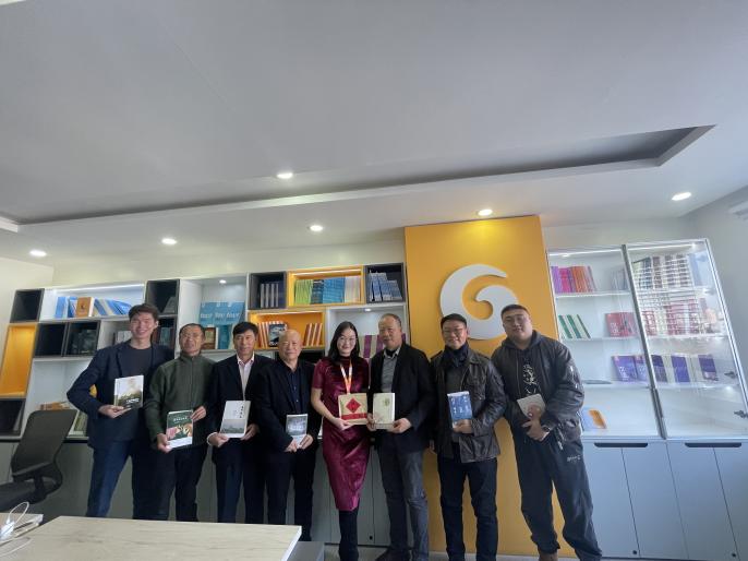 在負責承辦蒙古中國文學讀者俱樂部活動的光明出版社,光明集團總經理依親女士轉達了俱樂部負責人巴特爾的問候,并向作家們介紹了集團的發展歷程,介紹了出版社在譯介中國文學方面的成果,如《三國演義》《水滸傳》《西游記》《三體》以及正在翻譯的《雪山大地》等。依親女士表示,希望通過出版社和俱樂部平臺,能進一步促進中蒙兩國人民的理解和友誼。交流期間,作家們向出版社贈送了書籍,期待兩國文學互譯更加活躍。