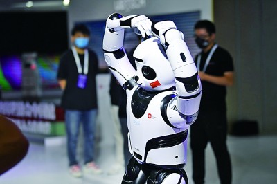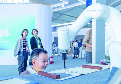 觀眾在參觀第七屆世界聲博會上的一款文藝創作機器人。新華社記者 傅天攝