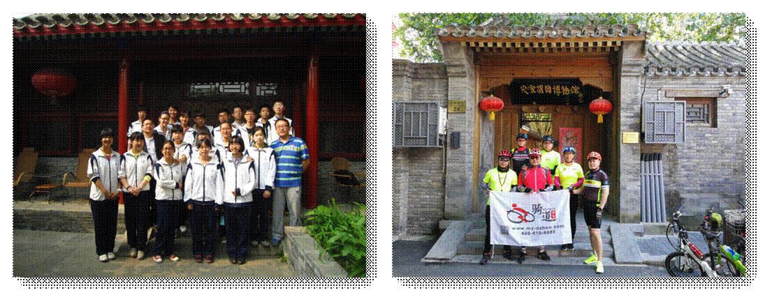 除了帶著我的學生去尋訪以外,我曾有幸帶著北京育才學校的中學生們去參觀過北大紅樓、梅蘭芳故居、趙家樓遺址等。疫情之前我喜歡騎行,我曾帶著騎友騎著自行車在胡同里轉。騎友們基本都是北京人,但是他們也不知道這個胡同里曾經住過誰,那個胡同里曾經住過誰,他們轉起來也很新奇。我和騎友們的這張合影是在史家胡同博物館拍的,而這里實際上是凌叔華的故居。