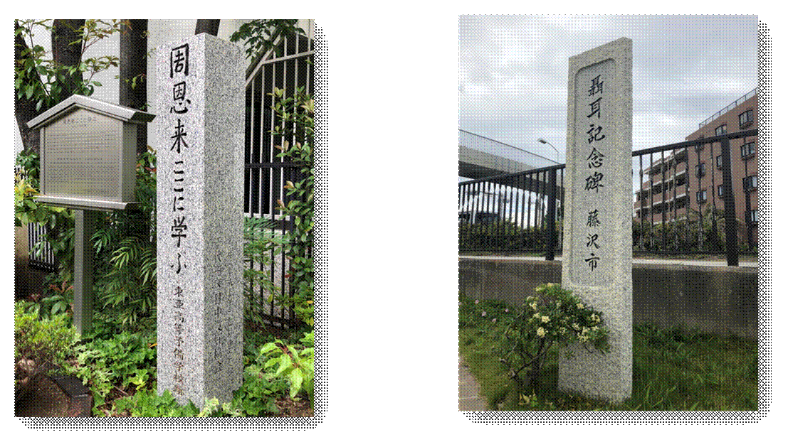 我還曾去過名古屋,發現名古屋大學也為郁達夫立了紀念碑,因為郁達夫曾經在名古屋第八高等學校求學。日本的千葉縣有郭沫若故居,而且還保護得很好。在東京,李馳老師住的后樂園離水道橋不遠,水道橋附近的愛全公園,那里曾經有個東亞高等預備學校,周恩來、聶耳、蕭紅都在這念過書,但后來因為轟炸,學校炸沒了,當地立了這么個石碑,也算是個小小的地標吧。這個是滕澤市設立的聶耳紀念碑。我們今天可能很難想象,每年的7月17日,日本人以及當地的華人會在這里集會紀念聶耳,由藤澤市消防隊——清一色的日本人在這里演奏《義勇軍進行曲》!我去看過兩次,親眼所見。實際上,還有很多人或長或短地到過日本,比如鄧中夏、比如張愛玲,只不過留下來的資料信息太少了,人們對他們在日本的經歷所知甚少。那其他城市有沒有,其他國家有沒有,這些問題我覺得都有待了解、值得挖掘,對于講述中國文學在海外的傳播很有價值、很有意義。顯然,日本有許多中國現代作家的故居、遺跡,在日本期間,圍繞魯迅和聶耳,我也寫了兩篇文章。