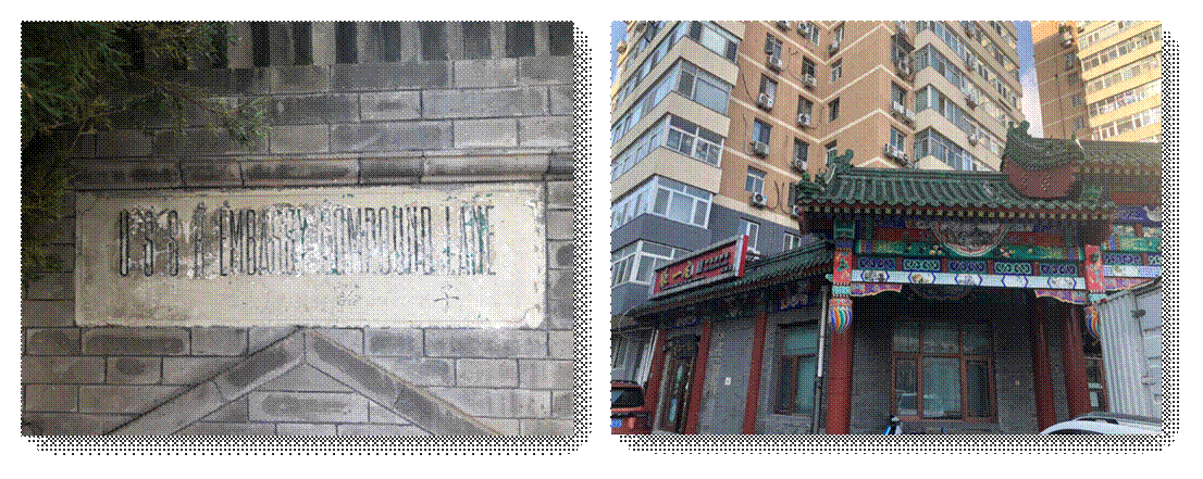另一方面呢,北京許許多多不那么被人們注意的尋常街頭,或許都有歷史故事可講。比方說像這張圖片,李大釗當年就是從這里——東交民巷被抓走的。大概2021年,這兒立了一塊牌子,告知人們前面是李大釗被捕的地方,我去的時候還沒有這個路牌。這個地方過去是蘇聯大使館的一個舊兵營,當時李大釗人身安全受到威脅,藏到了這個蘇聯大使館里,張作霖的軍閥政府找機會沖進大使館抓走了李大釗。還有最初給大家展示過的香廠路、萬明路十字路口的東北角,陳獨秀是從這兒被抓走的,這是很重要的歷史事件,我們講述一個事件,必然得交代清楚時間和地點。只不過關于地點,現在已經找不到當年的痕跡了,所以我們如果沒有看過相關的資料,就會覺得這個地方沒有什么特殊的。
