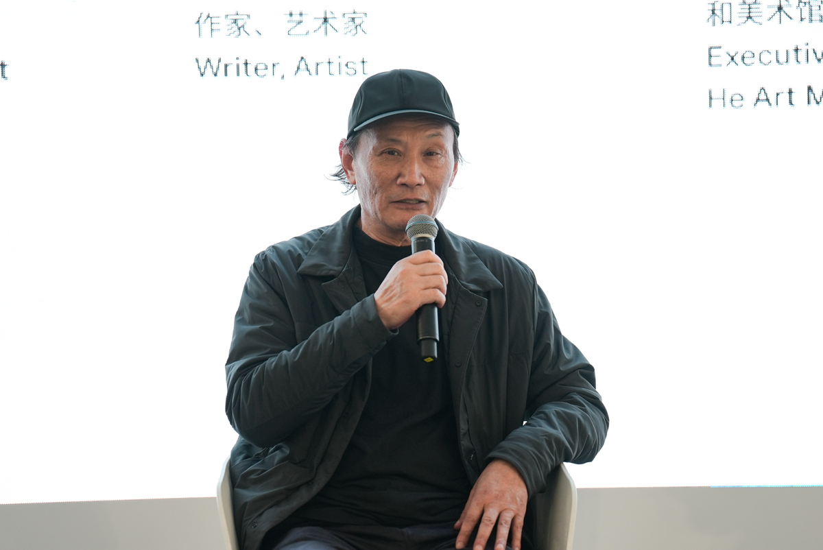 11月7日,金宇澄的最新畫作在上海西岸穹頂藝術中心亮相。圍繞“平面·構成·空間·心理”,金宇澄與北京畫院院長吳洪亮、和美術館執行館長邵舒、在藝創始人謝曉冬、主持人陳嘉瑩展開對話。