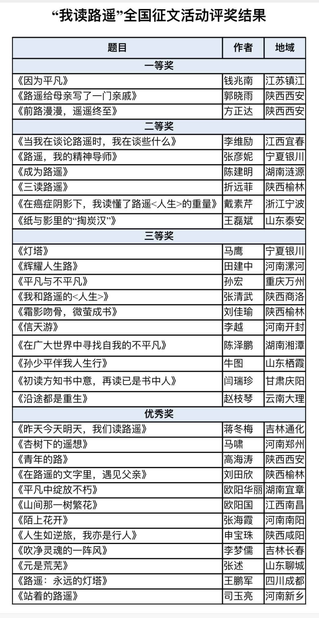 “我讀路遙”全國征文活動評獎公告