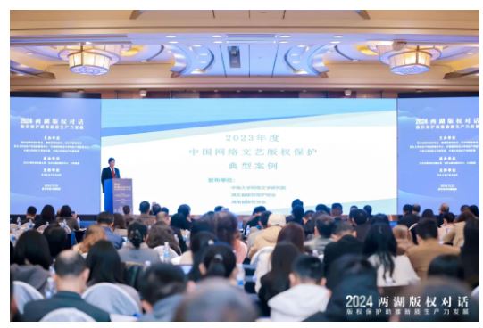 2024年11月22日,2024兩湖版權對話在武漢隆重開幕,中南大學網絡文學研究院院長歐陽友權教授在會上發布2023年度中國網絡文藝版權保護典型案例。本次活動由湖北省版權保護協會、湖南省版權保護協會、長沙市版權協會、武漢大學知識產權高級研究中心、中南財經政法大學知識產權研究中心、中南大學網絡文學研究院及中南大學知識產權研究院等機構聯合主辦,武漢華著科技有限公司、馬欄山版權服務中心與小米集團共同承辦。該版權對話圍繞“版權保護助推新質生產力發展”主題,設立中國網絡文藝版權保護典型案例專場發布活動。