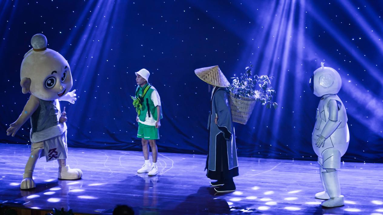 作為特色環節,啟動儀式上還展演了跨界融合舞臺劇《藥圣》的精編版,講述了灸童帶著小男孩豆豆和機器人叨叨與穿越而來的明代著名醫藥學家李時珍進行互動,了解《本草綱目》的編寫歷程和偉大貢獻的故事。這是國內首部利用裸眼3D等數字技術將動漫元素緊密結合的中醫藥主題舞臺劇,融合了歌舞、武術等表演元素,打造出身心共融的全景式、沉浸式觀劇體驗。
