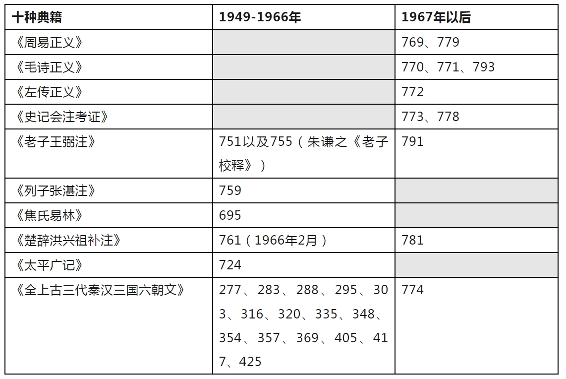 在提出新見解和對舊說進行增補訂正的過程中,錢鍾書逐漸產生了新的著述想法,就是指1972年3月他從河南干校返回北京后動筆、1979年8月后陸續出版的《管錐編》這部龐大著作。從該書所涉及十種樞紐性質的經典看,《容安館札記》皆有其草稿,可以下表說明: