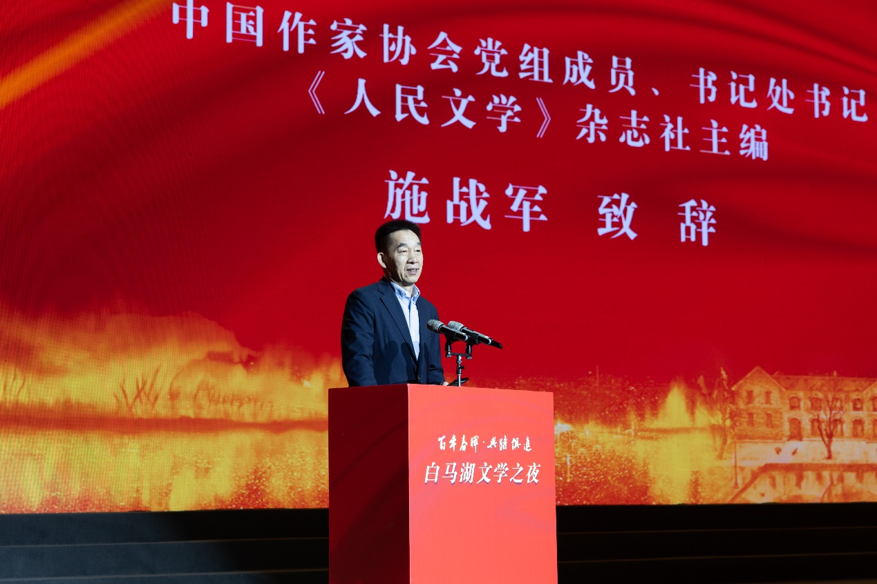 12月1日晚,首屆“白馬湖散文獎”頒獎暨“白馬湖文學之夜”活動在浙江百年名校春暉中學舉行。中國作協黨組成員、書記處書記、《人民文學》雜志社主編施戰軍,“白馬湖散文獎”評審委員會主任、中國作協副主席白庚勝,浙江省作協主席艾偉,紹興市副市長、上虞區委書記魯霞光出席并致辭?!度嗣裎膶W》雜志社副主編陳濤,老舍文學院專業作家寧肯,北京師范大學教授黃開發,紹興市委宣傳部副部長王洪海,上虞區人大主任陳堅,上虞區政協主席趙文中,上虞區委副書記李海裕,上虞區委常委、宣傳部長周曉國等一千多人參加活動。張煒、于堅、習習、李青松、阿舍、鮑堅、趙暢、周吉敏、王冰、李達偉等十名獲獎作家現場接受頒獎。