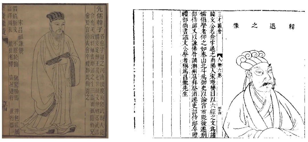 左圖為圖三:韓愈(取自明代呂維祺《圣賢像贊》);右圖為圖四:韓愈(取自明代王圻《三才圖會》)