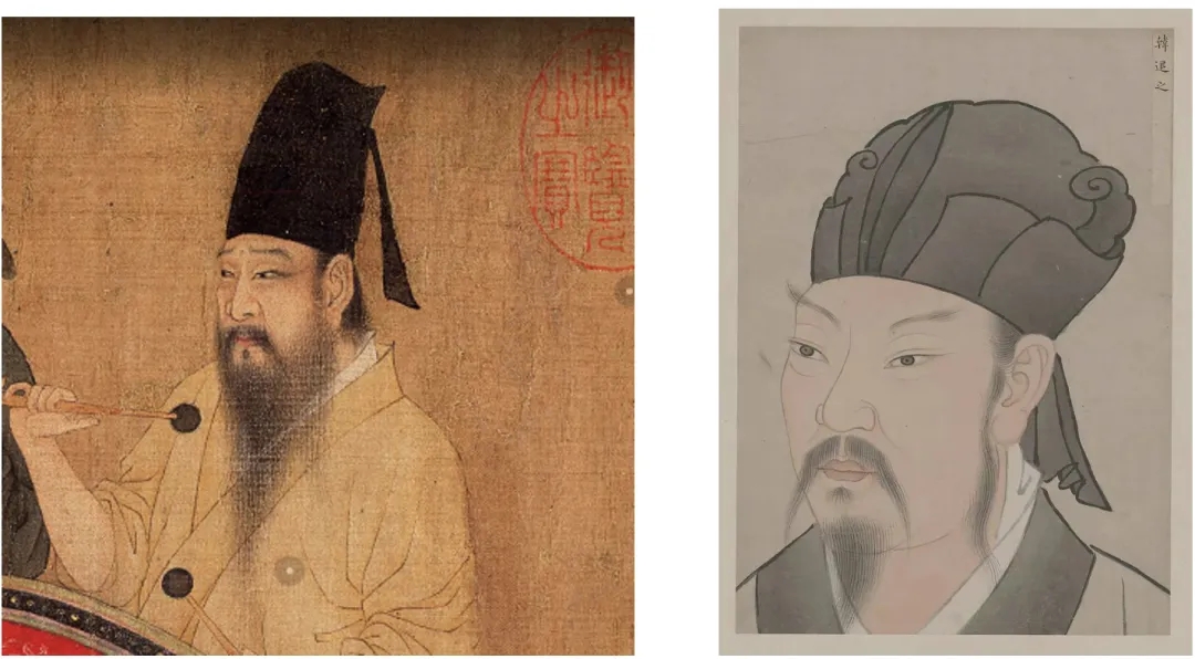 左圖為圖一:韓熙載(取自《韓熙載夜宴圖》局部);右圖為圖二:韓愈(取自故宮南薰殿舊藏《圣賢畫冊》)