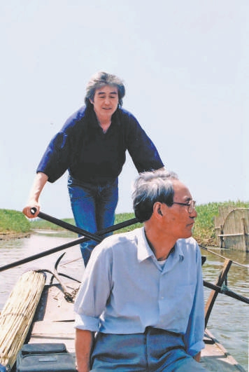 牛漢在白洋淀(1994年,劃船者為詩人芒克)