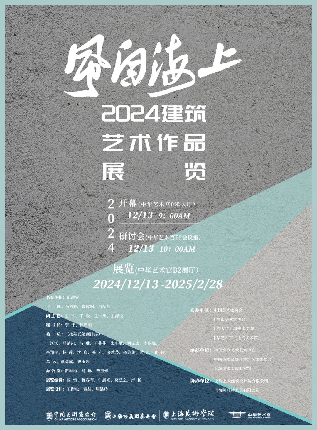 12月13日,由中國美術家協會、上海市美術家協會、上海大學上海美術學院及中華藝術宮(上海美術館)聯合主辦的“風自海上——2024建筑藝術作品展覽”在中華藝術宮開幕。展覽旨在展示近年來優秀建筑藝術創作成果,彰顯建筑藝術的民族文化內涵和時代美學意蘊,發揮其在城鄉發展與美麗中國建設中的作用,提升民眾審美水平,筑就各美其美、美美與共的城鄉新風景。