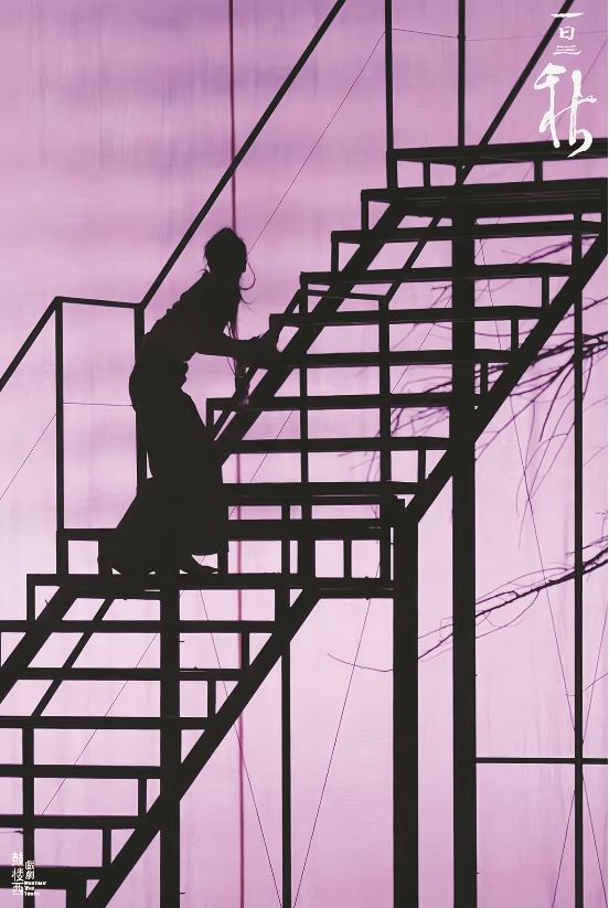 《一日三秋》以黑白灰為主色調的舞臺非??臻?,景深空間大,布景層次感強且極為簡潔。開場前,舞臺正中立著一個巨大的圓盤。這個圓盤設計很容易讓人想到《我不是潘金蓮》舞臺上青花瓷盤造型的轉臺。除了實現舞臺機械的實用功能,圓盤設計還暗示著某種人生循環。除了一架高高的滾輪鐵樓梯和升降景片,《一日三秋》的主要道具是召之即來揮之即去的大大小小的滾輪桌椅。這些桌椅有時可以充當人工轉臺。因為椅背只是框架,簡化成了棱角和線條,舞臺的寫意感便被強化,故事似乎可以發生在任何一個簡化了的時空。這種超時空的寫意形象在《一句頂一萬句》里是背景云圖,它的升騰與消散一方面配合著人物的心理活動,另一方面也暗示著大千世界的浩渺;在《我不是潘金蓮》里,當李雪蓮被污名為潘金蓮時,舞臺上方垂吊下一個巨大的、白色的、沒有五官的旦角“空臉”造型,這是一個面目模糊的“潘金蓮”,可以被安上任意一張女性的面孔。