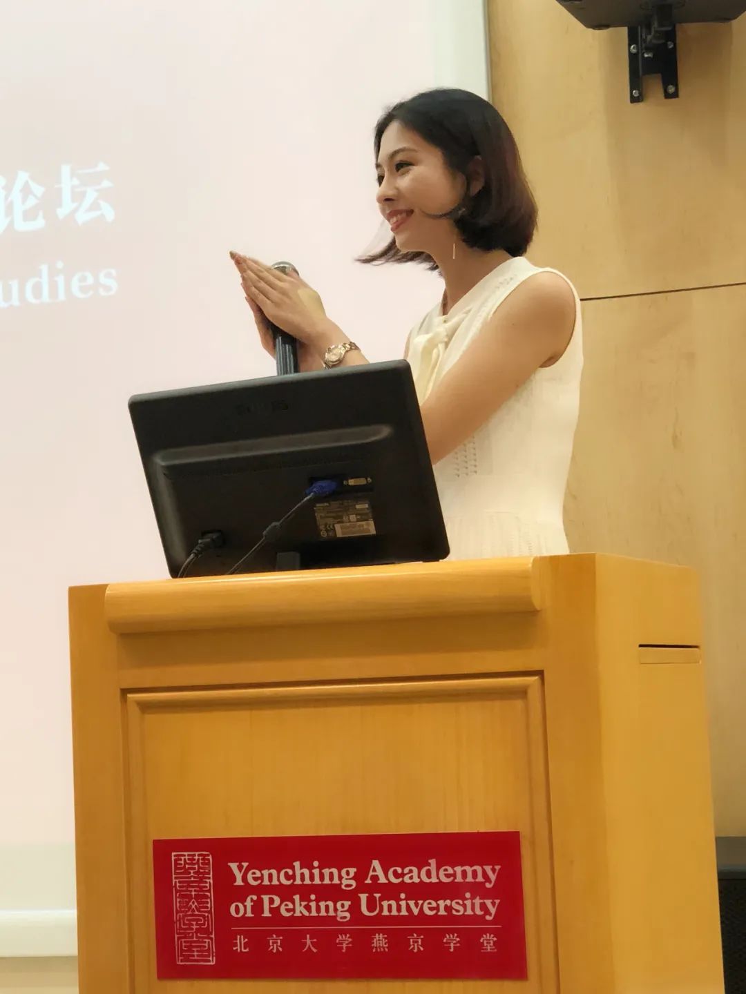 她很美,美得跟個靜物似的。細細去看那背景,灰褐色的屋子里零零落落地布置著乳白的定窯、粉青的玉器、漆器、銅壺、香爐、佛造像,照片里的物件一樣一樣獨自分開。龐大的屋子把小小的她從四面八方包圍起來,她用一雙既深沉又憂傷的大眼睛,默默看著我。這時候,后殿里遠遠地走出來一個外國人,鶴發朱顏,六七十歲的樣子。我猜他就是麥克。因為大殿上下里外,賓客們見了他都欣然雀躍簇擁上去。他們拉著他的手,滿臉含笑,問長問短。他們的笑聲打著旋兒,一浪一浪將我推了出去。
