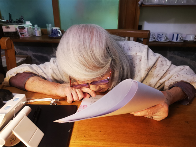 灰娃寫詩的時候很是投入,一旦進入寫作狀態,完全是一種常人難以想象的樣子——原有的一切生活秩序統統打亂,臉顧不上洗,頭發不梳理,穿衣也不再講究,說話也常常不在狀態,完全就是淪陷于詩境的樣子。她的詩集有很多作品是我幫著打印的,原稿總是寫了改,改了寫,有的地方改得像天書一般,交給孫女或者我打印后,變動依然很大。我感覺她修改的過程,更多的是想準確表達她的思想和觀點,語言的修改并不在追求語言本身而在于表述思想和觀點。從她最初思考,到開始創作,再到修改調整,一條思考和寫作的脈絡一點點從混沌走向澄明,直到定型定稿。這種嚴肅認真,像朝圣一樣對待詩歌的態度著實讓人敬畏。