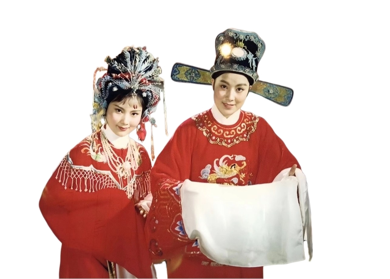 越劇電影《五女拜壽》劇照(右為茅威濤飾鄒士龍,左為何賽飛飾翠云)