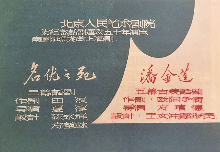 一九五七年,歐陽予倩編劇的《潘金蓮》與田漢編劇的《名優之死》同在北京人民藝術劇院演出