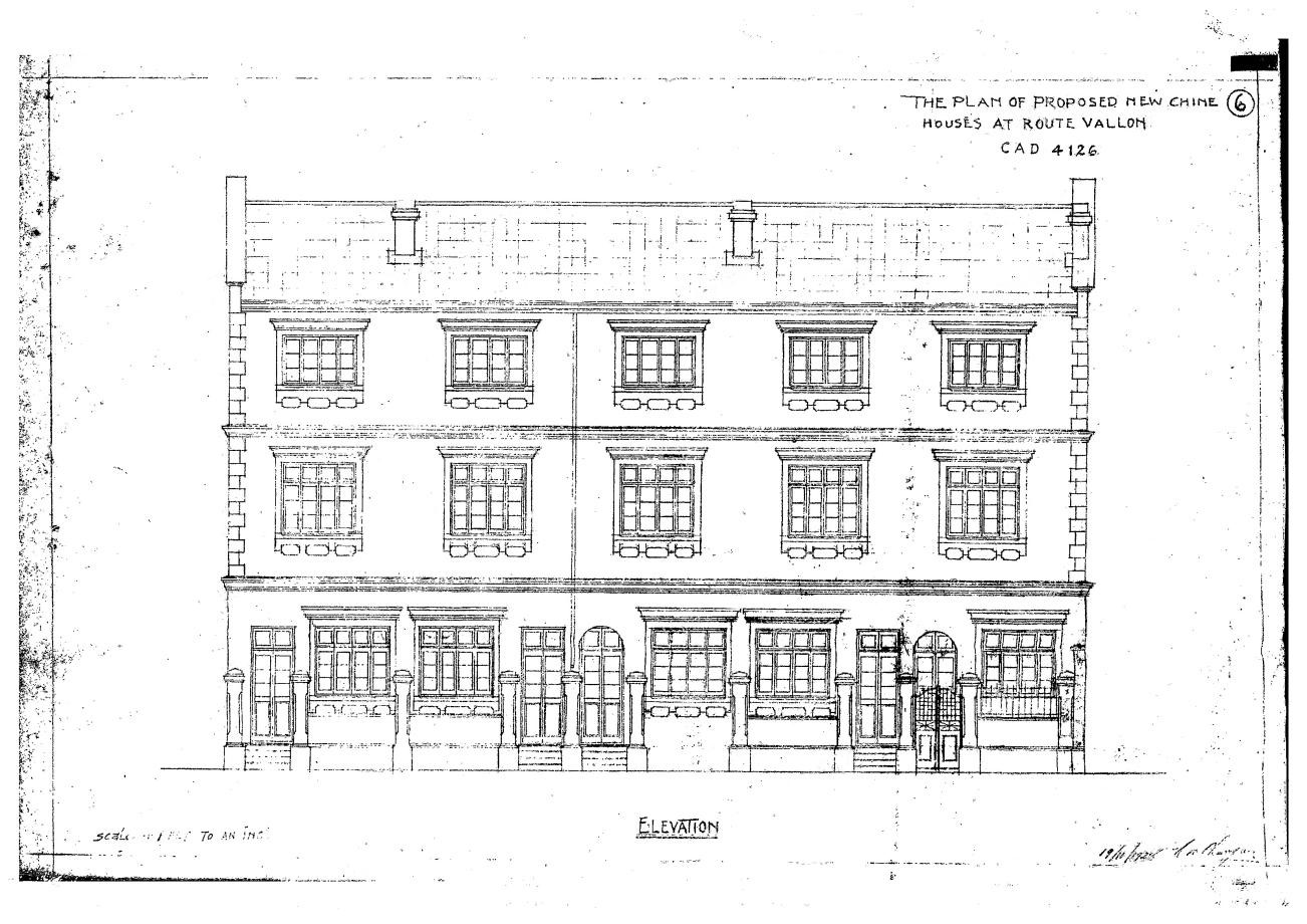 筆者對于上述地點進行了詳細考察,上海市城市建設檔案館所藏環龍路環龍里166—174號的立面如下圖所示: