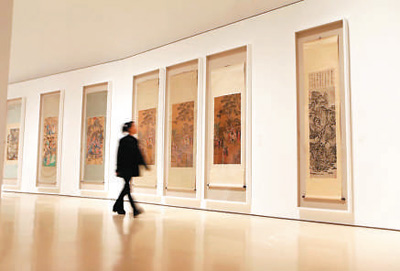 葉淺予臨敦煌石窟壁畫珍禽瑞獸、齊白石臨清代朱耷《瓶花》、于非闇臨北宋趙佶《御鷹圖》……現代名家的臨摹作品,為銜接傳統與現代審美觀念帶來啟發。除了書畫作品,莫高窟、麥積山、永樂宮等文化遺產,也是中國畫臨摹教學的重要組成部分。展覽展出吳作人、孫宗慰、張仃等畫家的壁畫臨摹作品,用筆觸再現古代藝術瑰寶。