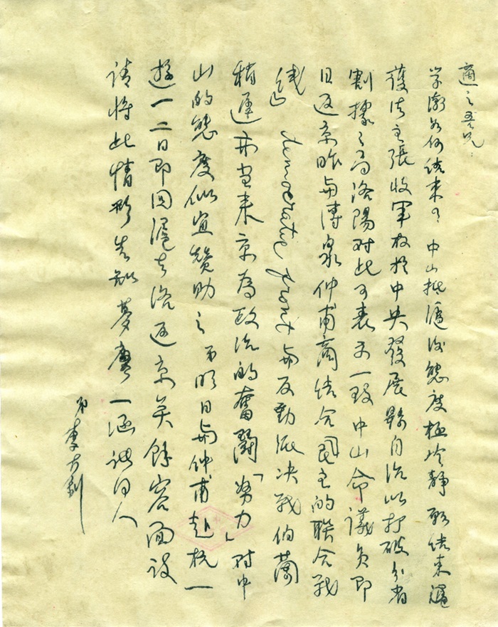 李大釗致胡適關于孫中山抵滬后之態度函