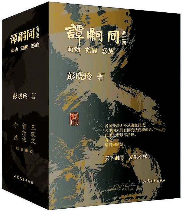 閱讀《譚嗣同》,需要沉心靜氣,近百萬字篇幅,有《萌動》《覺醒》《怒放》三卷,集中筆力描敘中國近代著名政治家、思想家、維新派志士譚嗣同短暫人生中最后七年的人生際遇,也對應著譚嗣同的維新變革思想從萌生到成熟、行動的三個階段。彭曉玲不拘泥于歷史小說的封閉守舊,圍繞譚嗣同的七年間行蹤變換,巧妙地將眾多人物引領出場,敘事細密,以諸多場景、事件、對話和細節來結構整部小說,將筆觸直接指向晚清動蕩時代的人情世態,挖掘人物紛繁的內心世界。透過她筆下人物的命運,便可窺探中日甲午戰爭前后的譚嗣同與眾多官紳與士人的個體命運與社會動向、國家命途的關系。