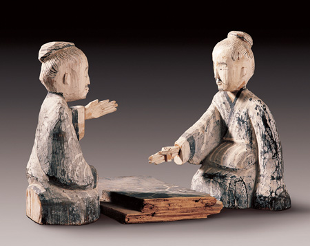 甘肅的繪畫與雕塑藝術一直以其精湛的技藝和深厚的歷史而備受矚目,既有古老文明的莊嚴與神圣,又有民間技藝的質樸與生動;既有歷史的厚重感,又有自然的靈動美。在“繪塑同光”板塊中,畫像磚、陶俑、木俑、彩塑、臨摹壁畫等展品悉數亮相。