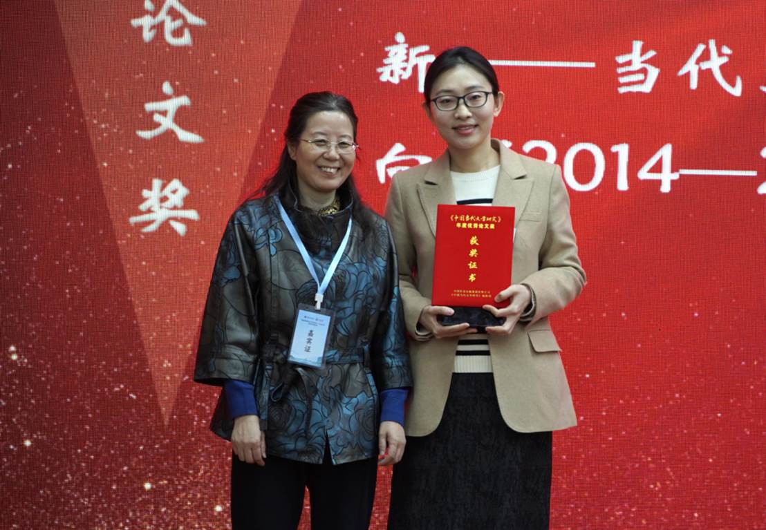 《新華文摘》文藝評論欄目主持、編審陳漢萍為李靜頒獎