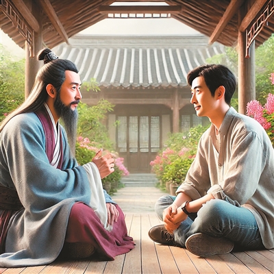 本報記者(虛擬形象)(右)正在采訪蘇軾(左)。